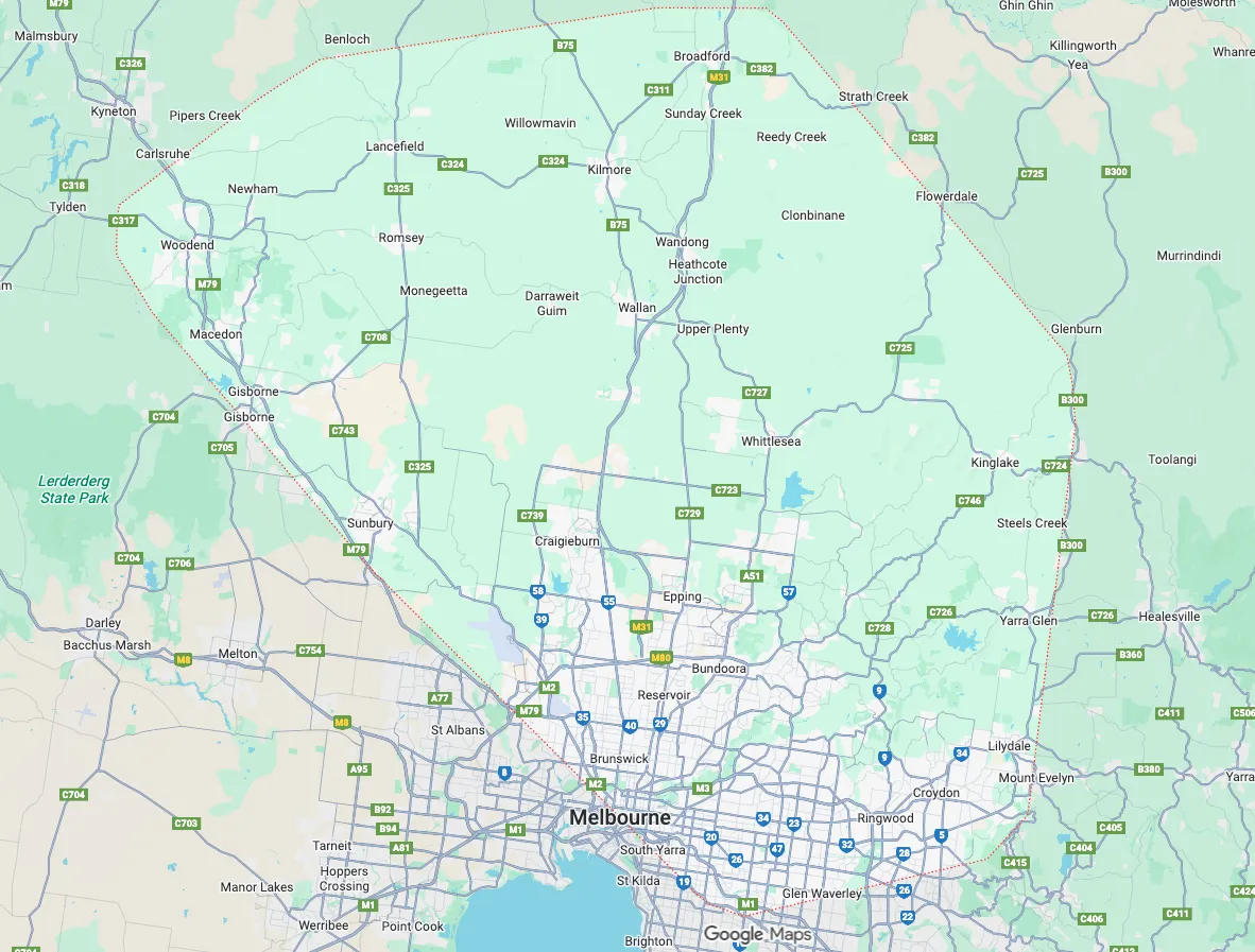 We service Melbourne’s northern and north-eastern suburbs including Campbellfield, Epping, Thomastown, Reservoir, Preston, Bundoora, Mill Park, Mernda, Greensborough, Coburg, Fawkner, Eltham, Diamond Creek, Wallan, Riddells, Woodend, Mount Macedon, Sunbury, Gisborne, and Templestowe, as well as surrounding areas.